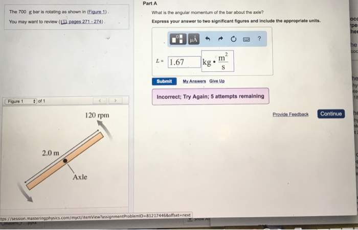What Is The Angular Momentum Of The Bar About The Axle?